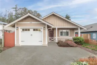 Welcome to a beautiful Port Townsend home. Energy efficient and built for low-maintenance living, the house is light-filled with an open-concept layout. It has two bedrooms, two bathrooms, all on one level, together with ADA accessible features. The upgraded kitchen has a gas range and a farmhouse sink. One-car garage, covered front porch, back deck, fenced yard, low-maintenance landscaping, all in a quiet location, just minutes from town. Trail network nearby.