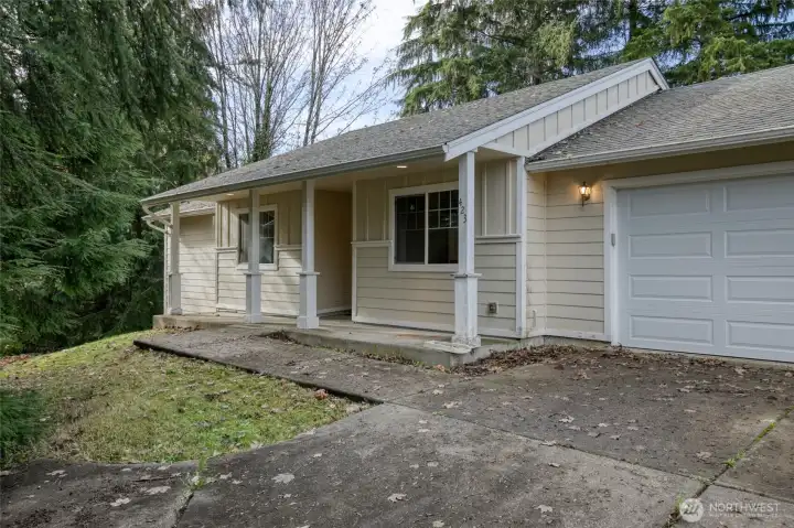 Charming, Single story, 3 bedrooms, 2 bath home in the desirable area of Central Park. Situated on nearly half an acre with mature evergreen trees providing a measure of privacy. Territorial view. The primary bedroom boast of a propane fireplace and 4-piece bath. Bamboo hardwood covers most of the flooring. A fenced deck is off the dining area creating a peaceful atmosphere. Oversized double garage leads through an ample utility room to kitchen. The front exterior has the most welcoming covered front porch. Low maintenance landscape. This is an Estate being sold "AS IS". No appliances included.