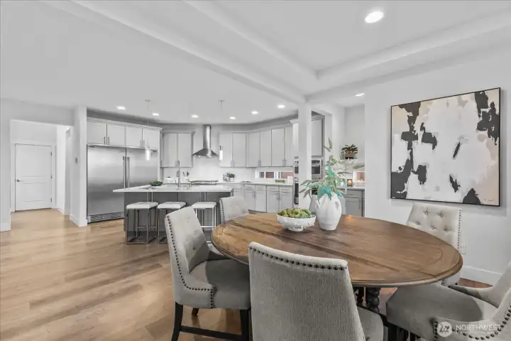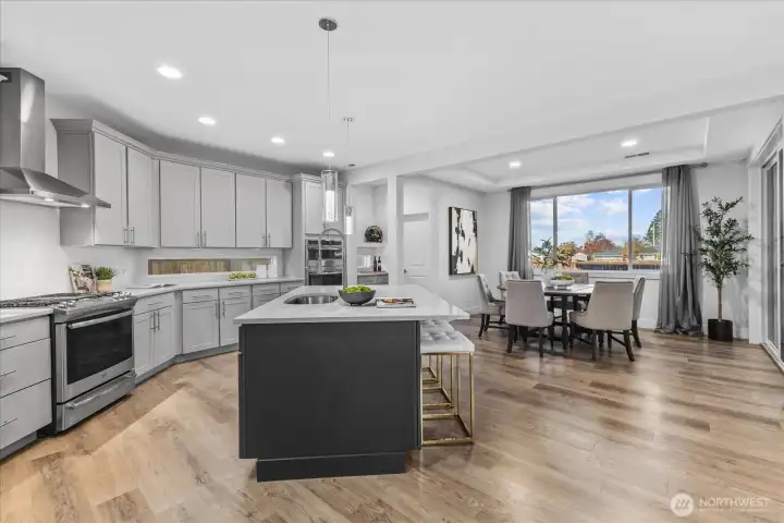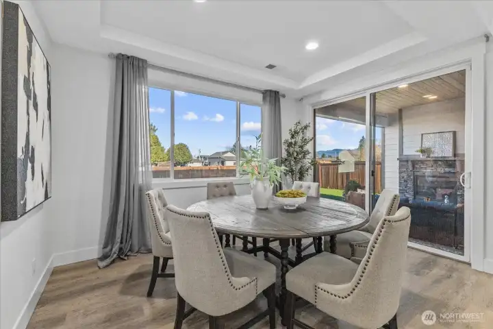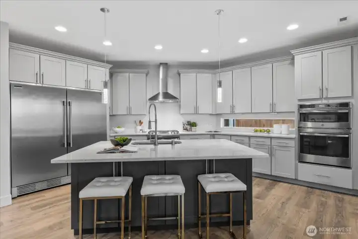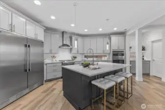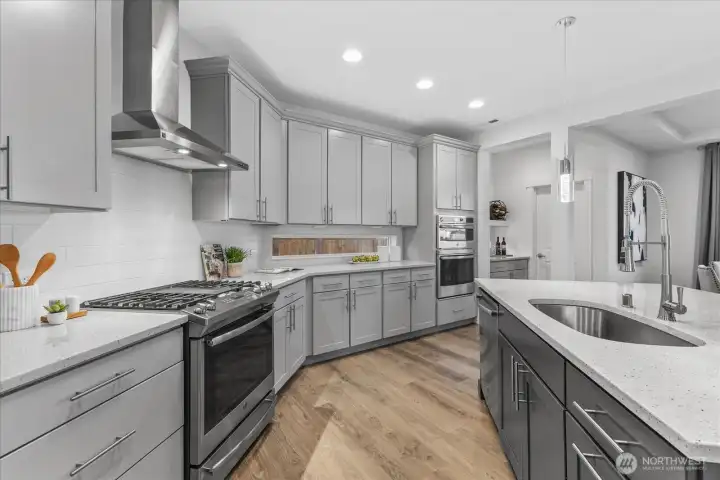 Located in the sought-after Stonebrook community at 3359 Terry Lane, this Enumclaw luxury home stands out with upgrades rarely seen, even in newer builds. Featuring 5 bedrooms and 3 full bathrooms. The gourmet kitchen showcases a commercial refrigerator, double ovens, walk-in pantry, and a dedicated wine/coffee bar flowing into large great room. A main-floor bedroom w/ a ¾ bath creates an ideal guest space. Upstairs, the primary suite offers dual closets and a spa-inspired bathroom. Enjoy a covered outdoor living area with gas fireplace and TV setup, plus A/C, tinted windows, tankless water heater, soft-close cabinetry, a 3-car garage, shed, sprinklers, full landscaping, and included gourmet appliances. Walking distance to schools & parks.