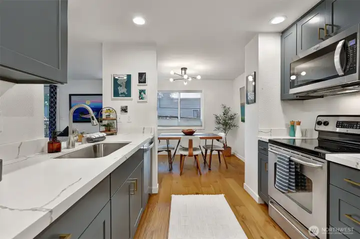 Your search for the perfect Seattle condo is over right now! This Madison Valley 2 bed/1 bath flat has been completely remodeled from the studs out. A/C? check! Engineered hardwood floors? check! Quartz countertops? check! Updated electrical and smart lighting? check! Modern bathroom with subway tile tub surround and stylish hexagon tile floor? check! Secure garage parking & a rooftop w/views of the Cascades. Located in vibrant neighborhood on the corner of Cap Hill, Madison Valley, and the Central District, you will find restaurants, shops, transit, and groceries right outside your front door. HOA is well-managed and recently completed an exterior renovation. Bring your pets and make this your new home! Dreams can come true!