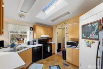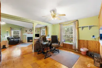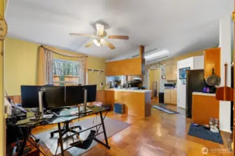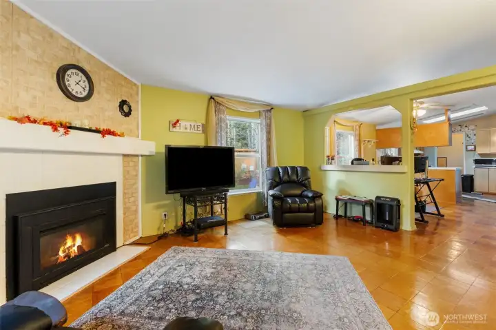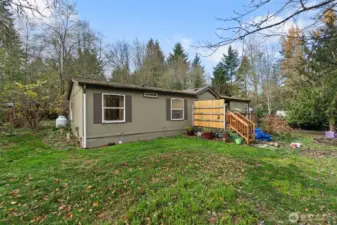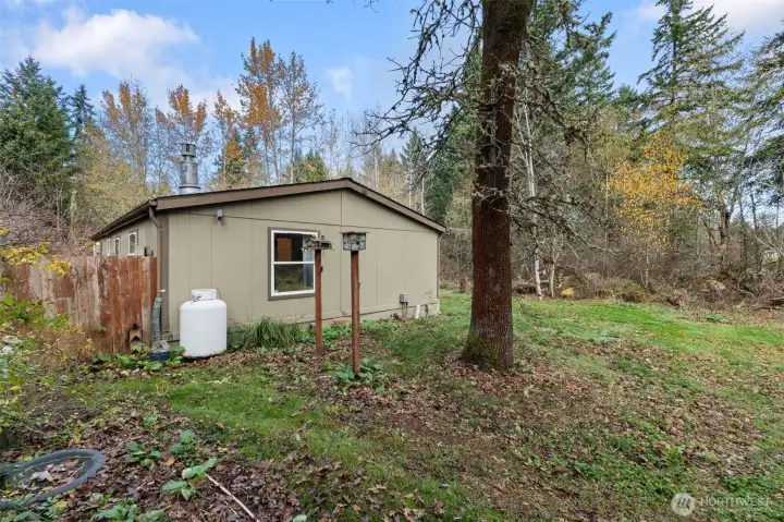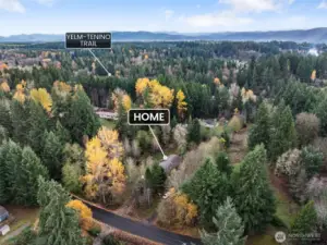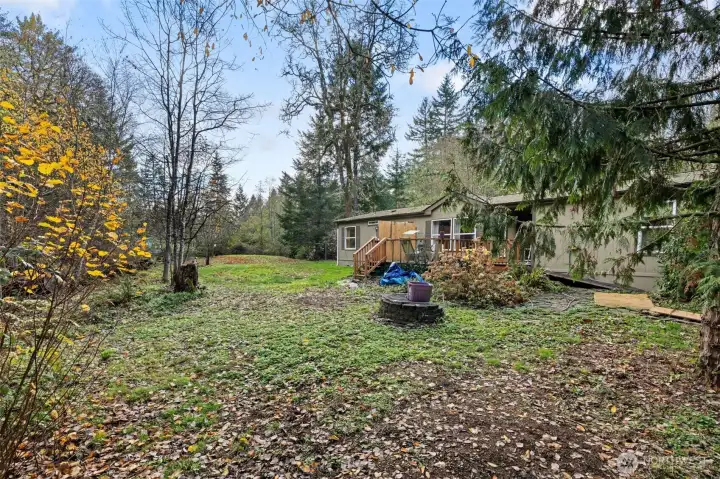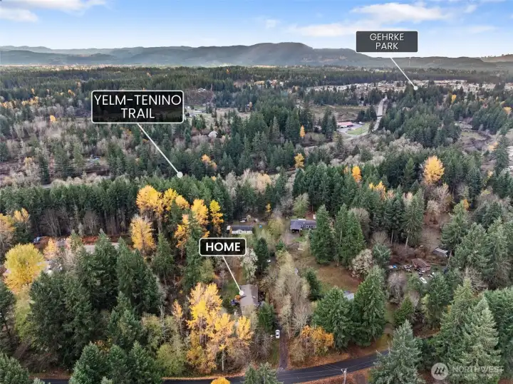 Affordable 1+ acre, 3bd, 2bth, shy 1,600sf home on the edge of town! A circular drive leads to a stone-fountain courtyard & cedar-fenced yard that will be bursting with blooms in a few months. Inside, enjoy an open layout w/ oak floors in the kitchen, dining room & den + new vinyl in laundry and main bath. Primary suite w/ relaxing garden tub + shower! Electric forced air + propane fireplace in living area; all appliances stay. Two exterior 220V outlets for RV and hot tub hookup w/ slab. Nice deck overlooking mature wooded backyard + huge extra parking area w/ rock firepit. Walking distance to Gehrke Park and paved Yelm-Rainier-Tenino Trail access. Good siding & roof; 2014. One-owner home ready for your new chapter in 2026!