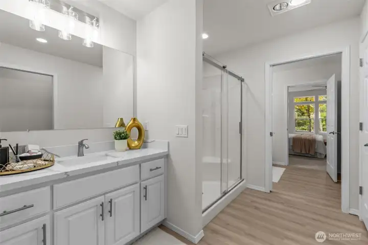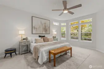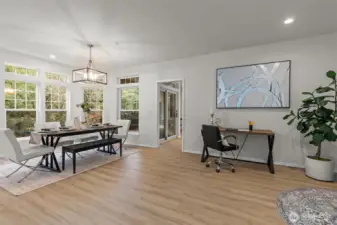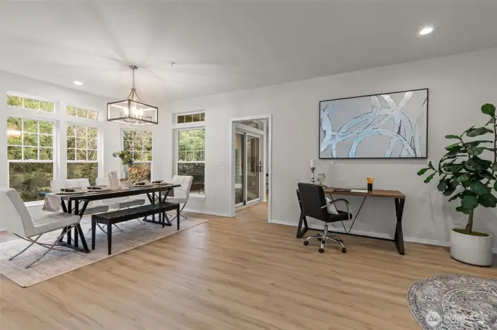 Welcome to this beautifully updated Forest Village home. The spacious floorplan offers a large living and dining room, den just off the dining room, open kitchen with new appliances, quartz counters & subway tile backsplash. Enjoy new LVP flooring, fresh paint, updated baths and new carpet in bedrooms. A primary suite with walk-in closet and a dual-vanity bathroom. A large second bedroom with an ensuite bath. High ceilings and oversized windows fill the home with light and greenery. Cozy gas fireplace for cooler days and a private patio for warm summer nights. View deer passing through the serene greenery. Oversized 2-car garage. This 55+ community offers exceptional amenities with an indoor pool, hot tub, fitness room, clubhouse and more.