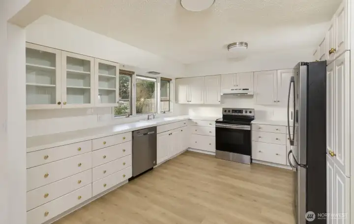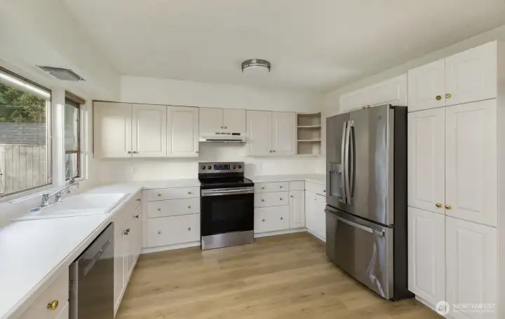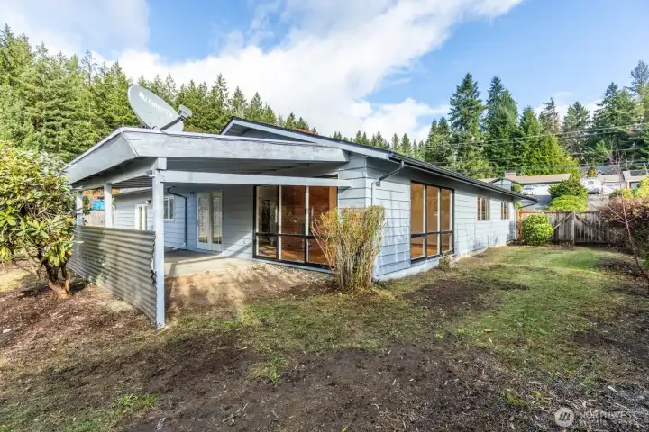 Welcome home to this spacious 3 bed 1.75 bath rambler. Step inside to find original hardwood floors that flow throughout the living room and bedrooms. Living room features floor to ceiling windows for plenty of natural light and a wood burning stove to cozy up to in the winter. Large kitchen with SS appliances, new flooring, pull out drawer base cabinets, pantry. Hall bath updated with deep tub, built-ins, subway tile surround and double sink vanity. Bonus room has fresh carpet and is just over 500 sgft with endless possibilities. Fresh paint inside and out. Covered patio great for entertaining. Updated permitted electrical panel. Pull through driveway for RV/boat parking. New roof 2020. Close to shopping, parks, ferries & ship yard.