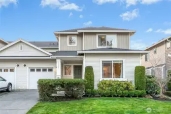 Tucked into the tranquil Cascara 55+ ARCH community, this contemporary home blends comfort, style and ease. An open great room with soaring ceilings sets the stage for everyday living, flowing into eat-in cook’s kitchen with beautiful rich wood cabinetry, stone counters, ss appliances and island. The main-floor primary suite offers a true retreat with ample closet space, five-piece bath and soaking tub. Upstairs adds another two bedrooms, full bath, and a flexible loft for work or hobbies. Single car garage and driveway parking. Enjoy quiet mornings on the private patio overlooking. With thoughtful upgrades, AC, and access to nearby trails, shops, and Redmond Ridge golf, this home elevates your everyday. Must see, restrictions apply.