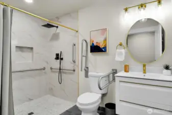 Stunning, luxury-remodeled 9-bedroom, 3-bath, 2,800 sq ft home near Downtown Puyallup & Good Samaritan Hospital. Expanded with like-new construction, new paint and premium finishes, offering a modern layout ideal for multigenerational living or AFH (WABO Ready)/personal care use. Bright open-concept design with a kitchen featuring SS appliances, modern cabinetry, & quartz counters. Three spa-inspired curbless tiled baths with ADA features enhance accessibility. Upgrades include new electrical panel,water heater,flooring,designer lighting,central A/C,oversized deck,alley access with extra parking, detached storage shed,& proximity to town,restaurants,& Hwy 512. A turnkey luxury-care opportunity ideal for elevated living/specialized care use.