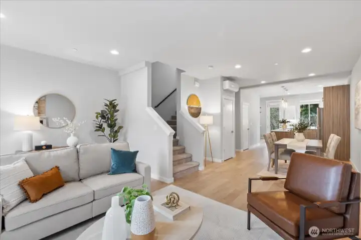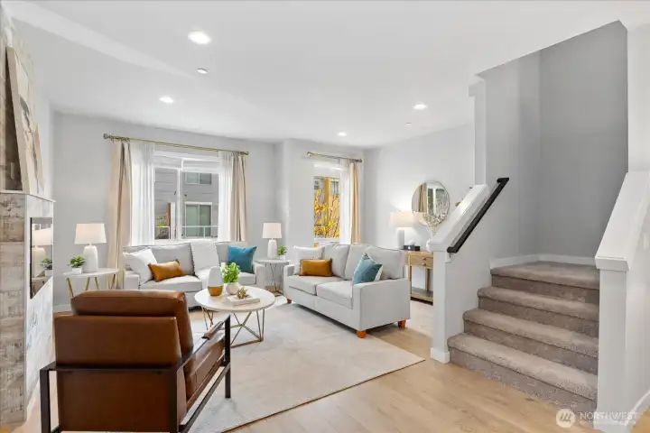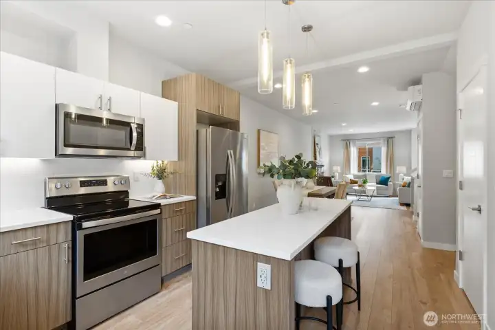 Modern living in Edmonds! Nestled in an intimate Edmonds enclave, this 2019-built 2-bed, 2.25-bath townhouse offers modern comfort and standout amenities, including a one-of-a-kind private fenced dog park and close proximity to local community parks. HOA-maintained landscaping and additional guest parking add ease of ownership. Inside, enjoy superior finishes such as a gourmet kitchen with island seating, designer Bellmont cabinets, quartz countertops, and an stylish floor-to-ceiling tile-wrapped electric fireplace. A split HVAC system and dedicated office nook complement the space. All appliances are included, along with two covered parking spots and one uncovered.