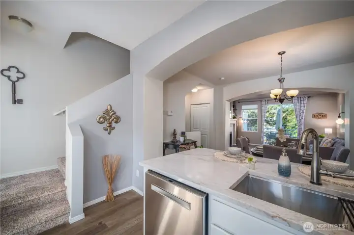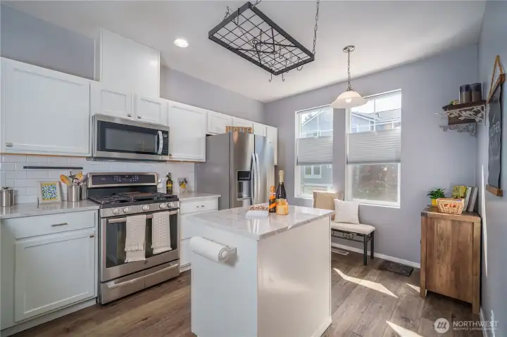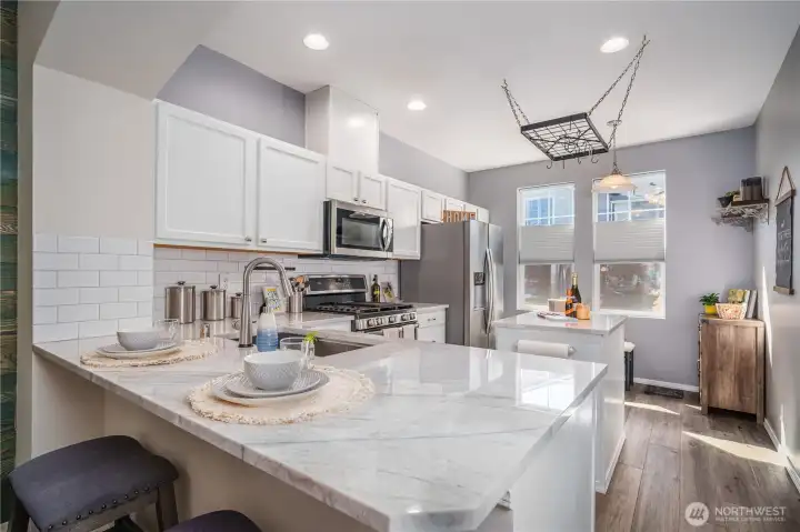 Welcome to this gorgeously updated townhome lovingly set in the serenity of the Magnolia section of Highlands East. Ascend to the inviting open floor plan complete w/ high ceilings, large picture windows w/ natural light, new/newer flooring, stellar kitchen w/SS appliances & quartzite counters, large living room, stylish powder room, & optimal deck! The top floor offers a large private primary suite w/ a double vanity full bath & ample closets. There's a 2nd bedroom that can also function as a home office or den, a 2nd bathroom, & newer washer/dryer. Conveniently located close to transportation, retail, dining, parks, & great schools. A large tandem 2-car garage, new roof, & 2-Year Fidelity Home Warranty complete this winning package!