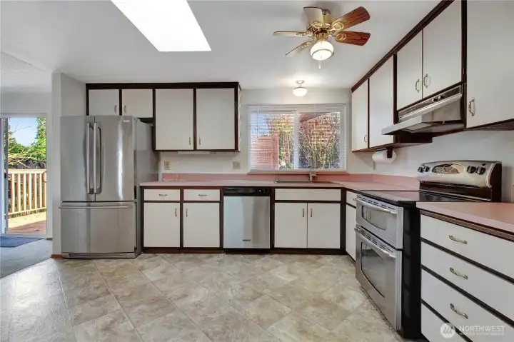 {SO MUCH SQUARE FOOTAGE FOR THE $$$} Make it your own! Almost 2500 sq. ft. of living space- with some upgrades - including double pane vinyl windows, gas furnace w/ heat pump and A/C, gas hot water heater - efficient is the word of the day!!! Newer vinyl in kitchen, new interior paint up, SS appliances, dining room w/ buffet & ceiling fans galore :) Living up and bonus down boast gas fireplaces. Master BR has double closets & 3/4 BTH. All BR's good sized. SOOO much storage up and down! Extra finished room down + utility area and 4th BR or craft room? Oversized 2 car garage and storage cabinets w/ man door to side yard. Entertainment sized deck, private/fenced backyard and mature landscaping. Close to shopping, medical services and bus line!
