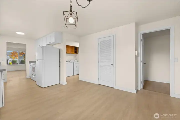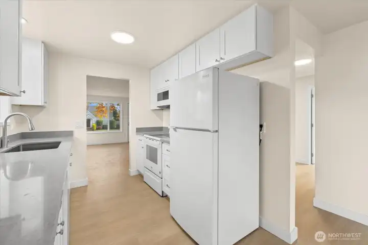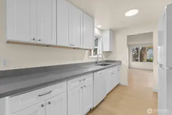 Discover modern, effortless living in this updated one-story home in South Tacoma. This 1,696 sqft residence, situated on a level 5,850 sqft lot, features modern architecture and high-quality updates throughout. The seller has refreshed the entire interior, including new laminate flooring, new cabinetry and countertops in both the kitchen and baths, and updated vanities. The home includes new appliances, an attached garage, and a desirable bath off the primary suite. Enjoy the fenced backyard and patio, perfect for outdoor enjoyment. This updated home is ready for you!