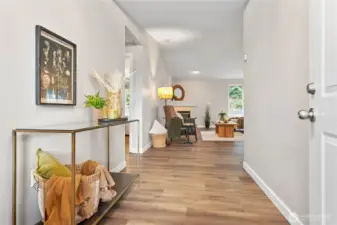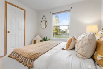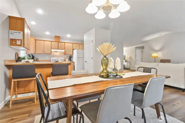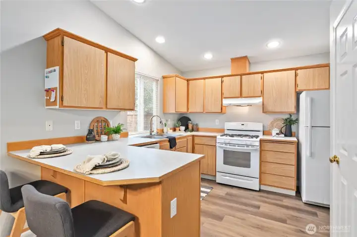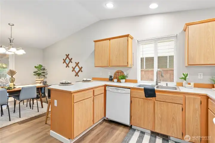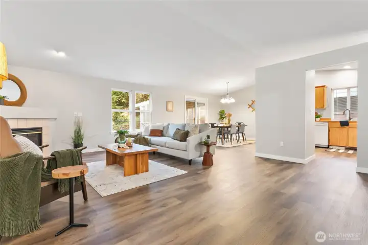 Move-in ready 3 bed/2 bath single level home located in a nice quiet neighborhood. You'll love the privacy of the spacious fully fenced lot that backs up to a greenbelt, with fruit trees, large yard, and a storage shed. Step inside to the traditional open floorplan featuring vaulted ceilings, a gas fireplace, new LVP flooring, & fresh interior paint. Open kitchen with eating bar, lots of storage, and all appliances included. Nice big primary suite with full bathroom & walk-in closet located on the far end of the home away from the other 2 bedrooms. The new enclosed back deck is perfect for all seasons of the year. 2 car attached garage with a separate shop room, perfect for all your tools. Room to park a small trailer or boat. Must see!