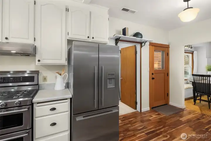 This cozy home sits in the heart of Woodlawn Park and just steps from Phinney Ridge’s lively retail core. A great condo alternative, it offers a generous 2 bedroom layout with an open living/dinning area and a bright kitchen. One bedroom is on the main level, and the loft bedroom upstairs adds extra flexibility. The main floor also includes a combined office and laundry room for added flex space. Enjoy a front porch for morning coffee and a side patio off the kitchen for easy outdoor entertaining, making this place feel suprisingly spacious.