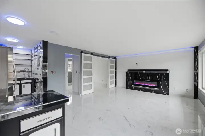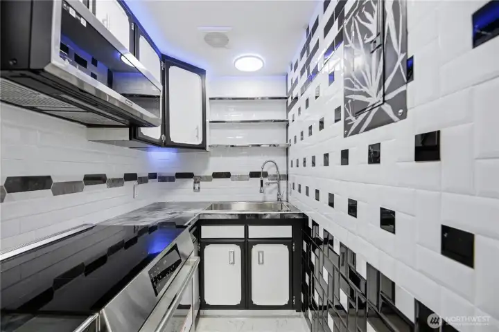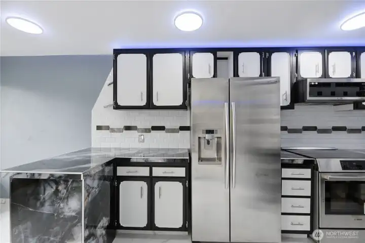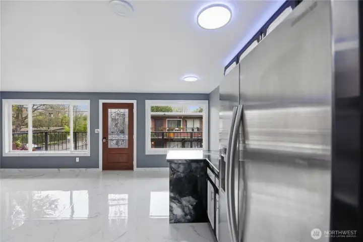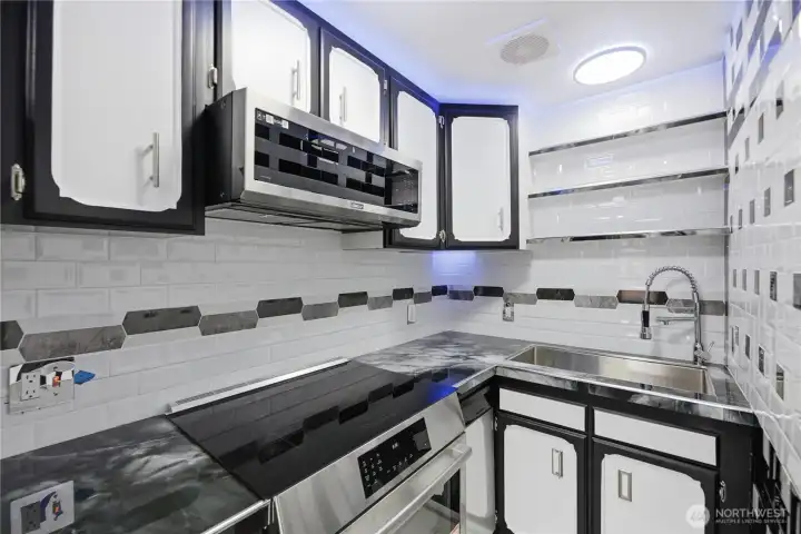 Over the top, light & bright, custom craftsman one bedroom, one bath top floor corner condo. Exquisite Carrera marble flooring. In-floor radiant heat. Every surface has been meticulously updated. The kitchen features marble counters, subway tile backsplash, stainless appliances, custom lighting including soffit lighting. Large living room with beautiful contrasting marble fireplace, new windows throughout. Primary suite with barn door access to living room to highlight the expansive space, in-suite washer/dryer, primary bath with custom chrome fixtures & extensive detailed tile. Deck off entry. One car reserved parking. Easy access to shops, parks, restaurants, freeways, bus line & light rail. Quaint complex, low HOA fees, no rental cap!