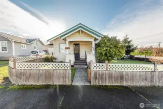 Discover the perfect Port Angeles gem, close to the Olympic National Park, Hurricane Ridge, ferry to Victoria, and downtown’s vibrant shops & dining! This charming, turnkey 2-bed, 1-bath home is ready for you to make it your own. Adorable covered front porch welcomes you into hardwood floors, charming living spaces, and a sweet dining nook off the efficient kitchen. Detached garage with workshop potential, and a sunny corner lot—fully fenced with low-maintenance landscaping, perfect for pets or a blank slate to create an urban garden space. Quiet neighborhood with easy bus access and a short distance to everything. Ideal as a primary home, weekend retreat, or continued income-producing rental!