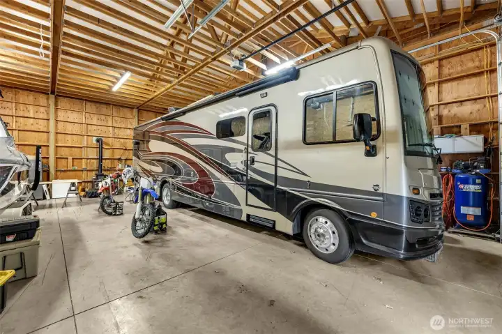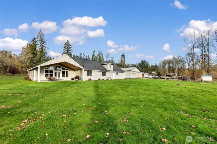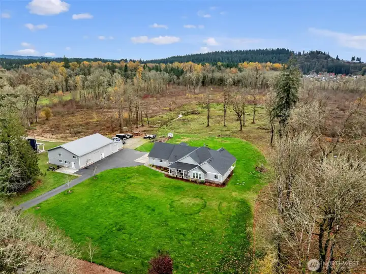 Beautiful 1½-story home on 9.75 flat acres with a large shop featuring guest quarters, RV storage, workout room, storage, and man cave. Home offers 3 bedrms and 2.5 baths, all bedrms on the main level. The primary ensuite includes a walk-in closet, double vanity, walk-in shower, jetted tub, & direct access to the laundry room. Bonus room above the garage could serve as an additional bedroom. Enjoy the open-concept great room with fireplace, plus a dedicated office. Large covered patio with ceiling fan & TV wiring. Newly painted exterior on both home and shop. Only 2+/- miles to downtown BG where you will find all your favorite shops and restaurants just minutes from this retreat! Call today to schedule your private tour!