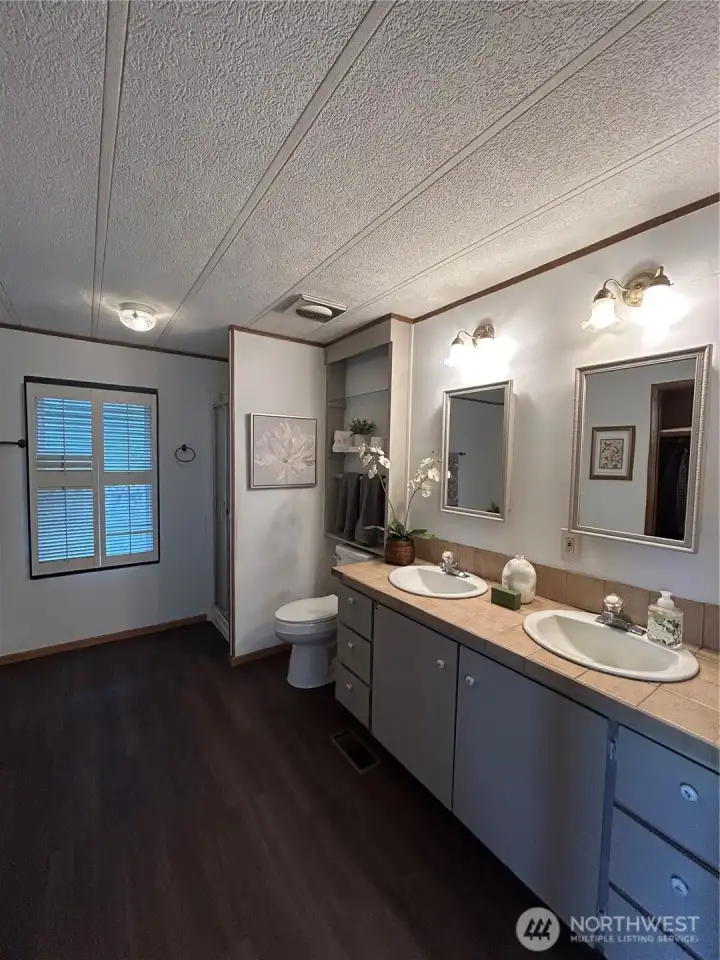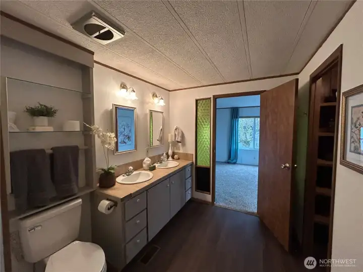 Welcome to Heather Hills, a gated 55+ community featuring an active clubhouse with social gatherings, card games, and weekly coffee get togethers. This well-designed home offers 3 bedrooms and 2 bathrooms, with a private primary suite and 5-piece en-suite bath on one end, and two additional bedrooms with adjacent bath on the opposite end for added privacy. Recent updates include 8” wide-plank espresso-tone LVP flooring, new subfloor, and updated PEX plumbing. The laundry room also features new sub flooring and LVP flooring. The bright living room enjoys western exposure with beautiful sunset views. Both formal and informal dining areas provide great space for entertaining. The light and bright kitchen features freshly painted white cabinetry and all appliances are included. Additional highlights include a new back deck, newer composition roof, A/C, double carport, and large storage shed. Situated on a quiet street with friendly neighbors and close to shopping, dining, parks, and Costco less than 10 minutes away. Monthly space rent includes water and sewer. Come enjoy comfortable living in a welcoming community—schedule your showing today!