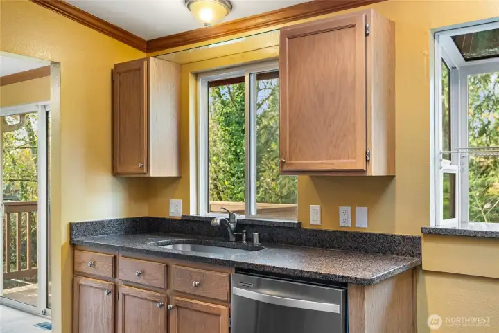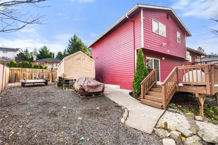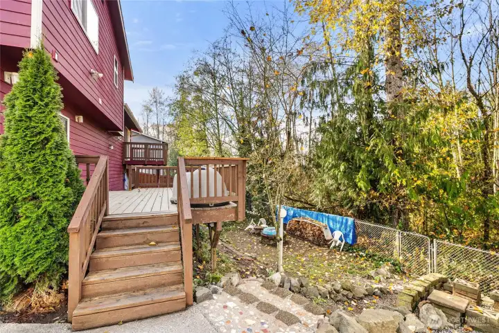 Beautiful, move-in ready home with vaulted ceilings, skylights, fresh paint, and new carpet. The kitchen features granite counters and stainless steel appliances. Enjoy a formal living room with a wood-burning fireplace, a dining room, and a family room that opens to multi-level decks. The impressive backyard offers stone pathways, a hot tub, fire pit, shed, and RV parking. Fully fenced and backing to a serene greenbelt for privacy. Close to schools, shopping, major highways and you can walk to Costco! Plus, an incredible 6-ft crawlspace provides all the storage you could ever need.