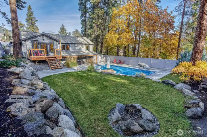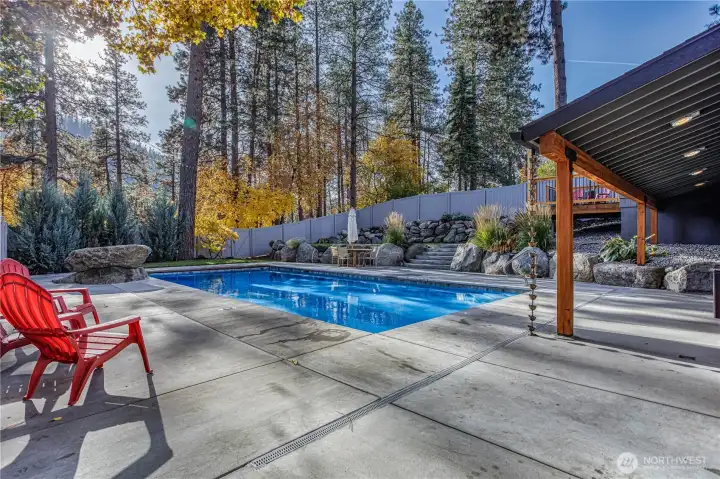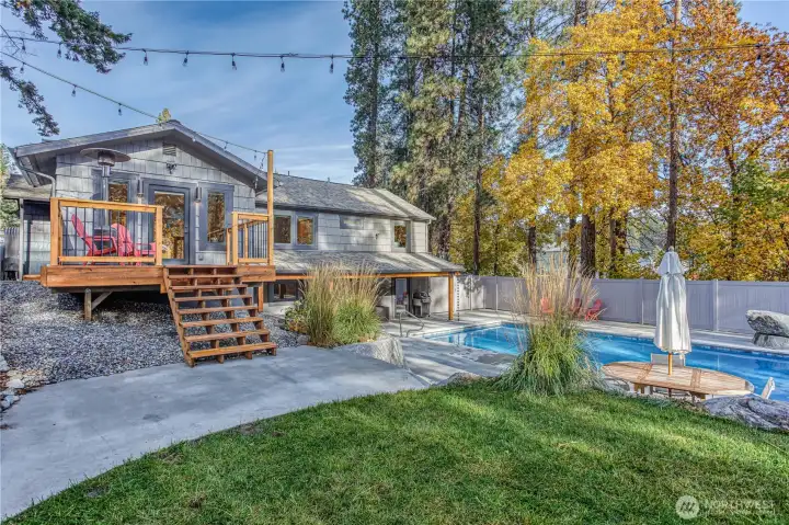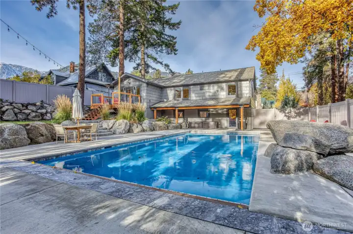 Discover your dream home in this stunningly remodeled house, completed in 2019! Step inside to an open, inviting living area adorned with a cozy wood-burning fireplace—perfect for relaxation and entertaining. The chef’s kitchen is a culinary masterpiece, boasting high-end appliances and quartz countertops, ideal for gatherings and gourmet cooking. With 4 spacious bedrooms and 3 spa-inspired bathrooms featuring heated tile floors and rain showers, luxury awaits at every turn. Enjoy the heated pool in a serene private setting and easy access to riverfront park trails. The primary suite offers a tranquil retreat with a luxurious bath and exclusive deck access. Plus, a dedicated movie room, heated driveway and garage ensure year-round comfort.