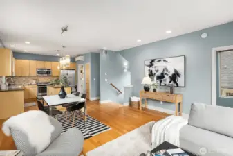 In the heart of Ballard sits this beautifully maintained standalone townhouse, offering the perfect blend of comfort and convenience. Forget the hassle of finding parking, everything you love about downtown Ballard is just a short walk away. Tiled entry opens to two spacious bedrooms and a full bath on the main floor. Upstairs, the open concept living area features a generous kitchen, dining, and living room with a cozy fireplace, plus a full laundry room and half bath. The top floor is dedicated to the primary suite, complete with a large tiled walk in shower, soaking tub, and two sinks. Step out onto your private deck with an outdoor fireplace, an ideal spot to unwind and soak up the afternoon sun. One off street parking pad is included.