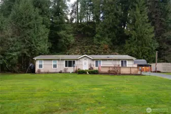 Welcome home! This 2019 3 bed, 2 bath Skyline Home sits at +/-1620 sq ft on just over half an acre in Concrete. Minutes from the river, enjoy privacy, room to expand, ample storage, & no home projects on the horizon. Hardwood cabinets throughout, vinyl plank flooring, spacious primary ensuite w double vanity, bright living space w vaulted ceilings. Permitted front & back deck space to enjoy all summer long w tons of yard space waiting for your raised garden beds - complete with outdoor shed storage for all your tools. Mini splits throughout the entire home, 30 yr roof in 2019, pellet stove & 30 amp RV hookup & more! Generator stays with home.