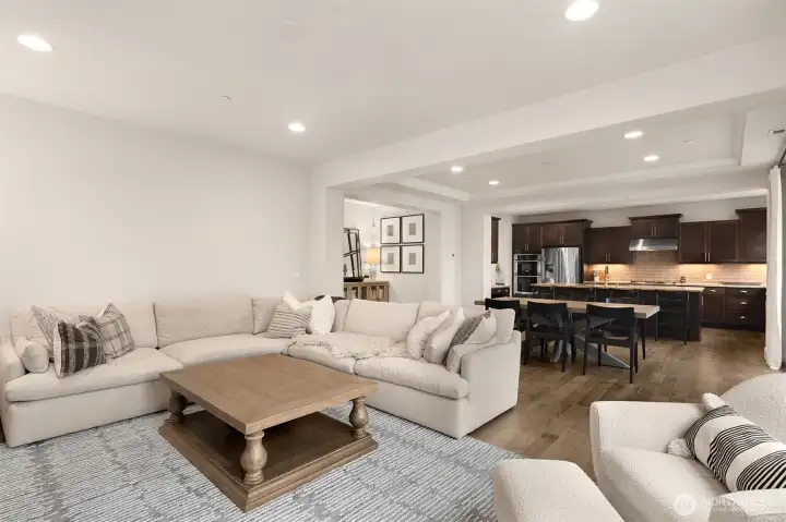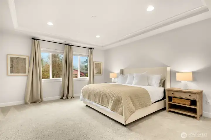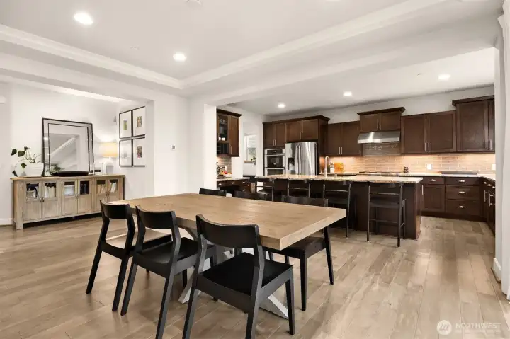 Enjoy sweeping Mt. Si and Territorial views from this spacious, light filled 5-bedroom home! Thoughtfully designed with hardwood floors, a main level bedroom, and a gourmet kitchen featuring granite countertops, soft close cabinetry, a big center island, stainless steel appliances, and a 6-burner gas stove. The primary suite is your private retreat offering mountain views, a soaking tub and a generous walk in closet. Perfect for year round entertaining, the large slider and the covered patio extend the living space outdoors. Stay cozy by the gas fireplace in the winter and cool down with AC all summer long. Ideally nestled off of the main road, enjoy being close to trails, parks, and all of your favorite North Bend amenities. Welcome Home!
