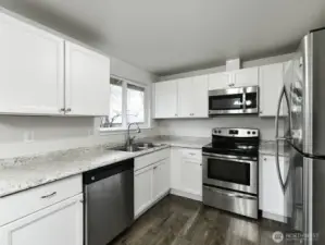 This affordable home in Yelm is in good proximity to Yelm Hwy and getting to I-5. The lot is super-sized just under 1/3rd of an acre with most of the land in the fenced backyard. Roof looks great with lots of life left. Plenty of room for parking and a 1 car garage. The inside is clean, just painted and offers new flooring. Big living room, plus separate family room with French doors leading to the deck outside. The firepit is ready to warm you and friends. The kitchen is bright with plenty of granite counterspace and cabinetry. Dining area. All shiny stainless appliances are included along with the fridge. 1204 sq ft of living area, 3 Bedrooms with 1.5 baths. No HOA. No work needed, move-in ready. Take a tour.