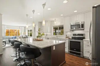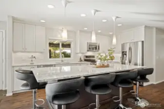 Rare opportunity-luxurious, rebuilt home with $140K in upgrades! Effective yr built 2014. Quality finishes & designer style=better than new! Entertain in large dining area & HUGE 9’ Pental Quartz island that seats 6. Gorgeous kitchen w/contrasting island, quality appliances & custom lighting. Great Rm drenched in natural light. Luxurious primary bath w/white quartz & 2 vanities. Den w/built-ins & slider to deck. 2nd bedroom/bath. Sheet rock interior and new flooring. Newer roof, furnace, heat pump, water heater, electrical, plumbing & windows. Rebuilt deck, solar shade. Professional landscape, irrigation & lighting. Shed & AC. Desirable 55+ community w/clubhouse, pool, dog park, RV parking. Lake, trails, park, grocery, bus & dining nearby.