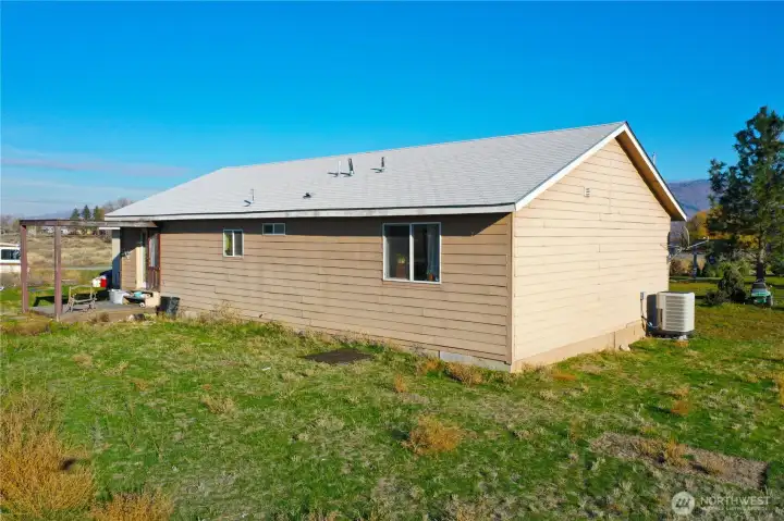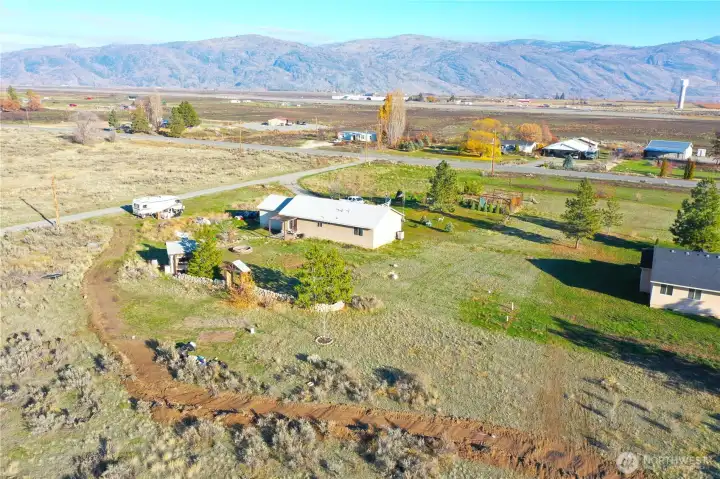 360 degree Tiffany and Omak Mt views. Omak flats county living - 3 bedroom, 1.75 bath home on 3.35 acres. 1,372 sq ft of living space plus 400 sq ft attached garage. Layout includes living room, dining room with French doors to backyard, kitchen with breakfast bar, and separate laundry room. Primary bedroom features en-suite bath. Property offers garden area, fire pit, and open usable ground. Finished shed with power provides additional storage or workspace. Quiet rural setting with room for hobbies, small livestock, or expansion. Easy access to local amenities. Home does need updates, but priced accordingly.