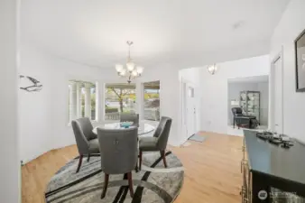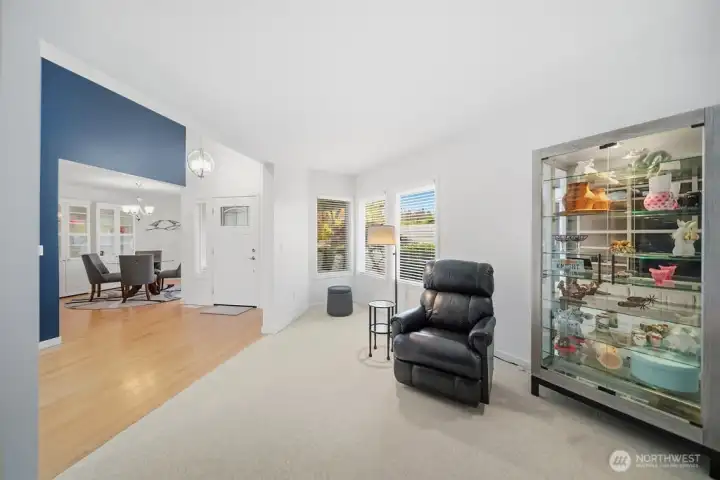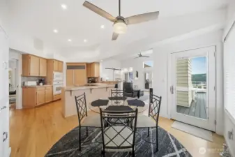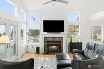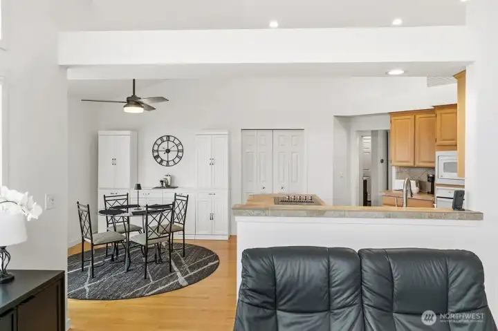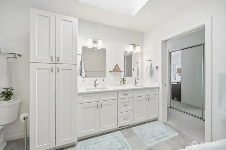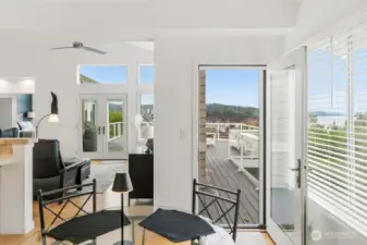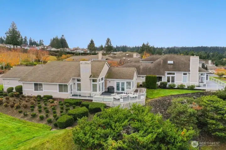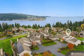 Gorgeous water and mountain view home in a desirable 55+ Bayview Community. Privately situated at the end of a cul-de-sac, this single -level home features a split floor plan, spacious kitchen with Sub-Zero frig, large pantry and eat-in that flows into the dining area or cozy up to the fireplace in the living room. Pamper yourself in the primary suite with sweeping views and completely updated spa bathroom. Oversized deck is perfect to entertain or just sit and relax gazing at the beauty our NW has to offer. Utility room is loaded with storage. Custom cabinets line the garage, and it is the nicest in town! Too many upgrades to list - this home is a show stopper!