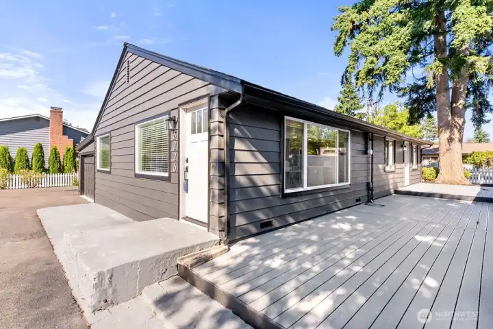 Midcentury rambler featuring 3 bedrooms and 2 bathrooms in the highly rated Northshore School District. Nestled in the heart of a welcoming neighborhood, this private oasis is just minutes from Lake Washington, close to scenic parks, trails, and local amenities. The open-concept layout showcases an accent electric fireplace, gourmet kitchen with stainless steel appliances, Shaker cabinets, custom backsplash, and durable LVP flooring. Both bathrooms are beautifully customized, and the home includes a fully fenced yard, lush landscaping, and a spacious Trex deck perfect for entertaining. 10 min to I-405 and I-5. A true gem you won’t want to miss! Come See TODAY!