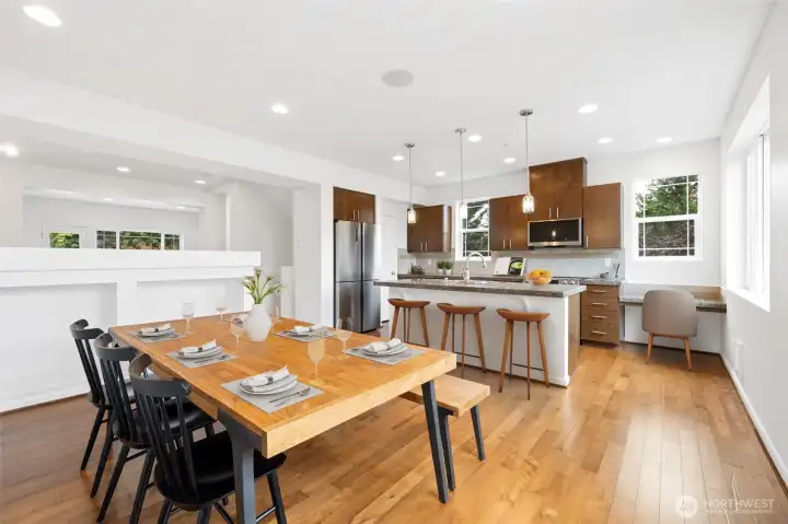 $10k credit towards closing costs/HOA dues! Spacious 4 bed, 2.75 bath end-unit townhome! Enjoy fresh interior paint, new carpet, along with the peace of mind of new roof & newly repaved community roads. Main floor features an open-concept layout with high ceilings & rich hardwood floors. Boasting newer appliances, the kitchen flows seamlessly to the dining/living areas & private balcony. Designed for versatility, the lower-level 4th bedroom has a huge 1/2 bath (potential to add tub/shower). Ideally situated, offering views, more privacy & natural light, plus it's next to the community park for play, gatherings, or a quick stroll. Best of all, location is convenient to freeways, public transit, shopping, dining, schools & everyday amenities.