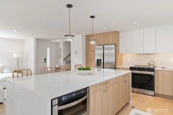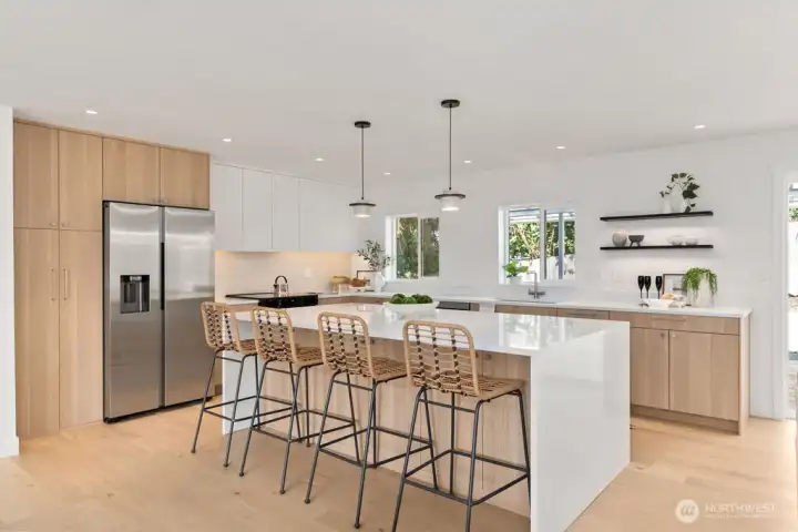 Absolutely stunning remodeled home showcasing superb quality&high-end finishes throughout.Featuring 6 b/rooms including a junior primary&a luxurious main primary suite,plus 4 baths,this residence blends comfort&style.The custom kitchen offers SS appliances,quartz c-tops,a waterfall island,&under-cabinet lighting.A striking e-fireplace enhances the living room,while the downstairs rec room w/powder room adds flexibility.The main primary suite boasts a designer accent wall&a spa-like bath w/curbless shower,custom glass,freestanding tub,& heated flooring.Enjoy outdoor living on the covered deck/relax on the welcoming front porch w/its custom accent wall.Additional highlights include a brand new sewer connection,no HOA! Must SEE TODAY!