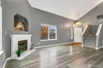 Set on a desirable corner lot, this inviting home blends open, light-filled living with versatile spaces. Vaulted ceilings highlight the living areas, while the kitchen with breakfast bar and nook awaits your personal touch. Step through the slider to the fully fenced backyard—perfect for barbecues and gatherings. Upstairs features three bedrooms and two baths, including a primary bedroom with en suite bath, oversized soaking tub, and walk-in closet. Major updates completed include new roof, furnace, water heater, and exterior paint! Conveniently located just minutes from PLU, WA-512, I-5, and JBLM.