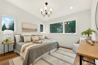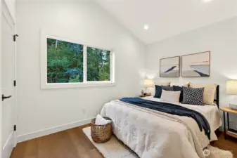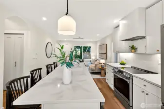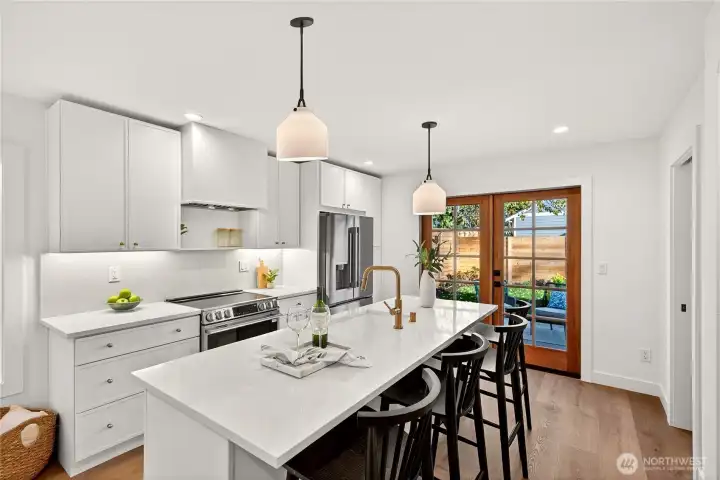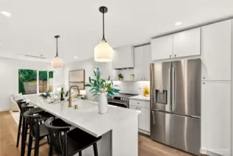 A newly built 3-bedroom home in desirable Broadview. Refined luxury & quiet privacy near Carkeek Park & Seattle Golf Club. Flooded with light, the open-concept layout includes a chef’s kitchen with a large island & elegant finishes—perfect for entertaining.French doors lead to a private, fully fenced backyard with a patio for alfresco dining.Upstairs, the serene primary suite offers a spacious walk-in closet and a spa-inspired en-suite featuring heated marble floors and a luxe walk-in shower. Additional bedrooms are flexible for guests or a home office. Vaulted ceilings, a dedicated EV-ready garage, and curated design details complete this home's elevated appeal. Rare opportunity to own a new build surrounded by greenery in a peaceful area.