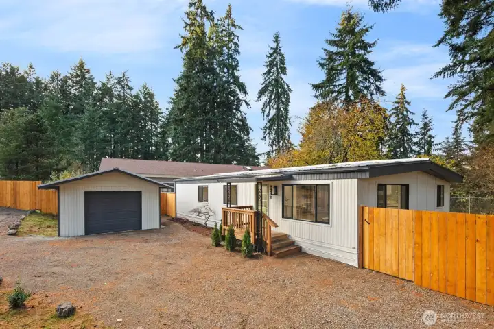 Discover a beautifully reimagined retreat in Gig Harbor—completely remodeled with style and sophistication throughout. LVP flooring leads you into an ultra-modern kitchen featuring quartz countertops, sleek white cabinetry, gold trim, and brand-new stainless steel appliances. The serene full bathroom showcases marble tile and a shower/tub combo, while spacious walk-in closets add everyday convenience. Set on an 8,050 sqft fenced lot, this home offers a large covered patio, detached 1-car garage, abundant parking, and RV space. With quick access to SR-16 and all Gig Harbor amenities, this is modern living at its finest.