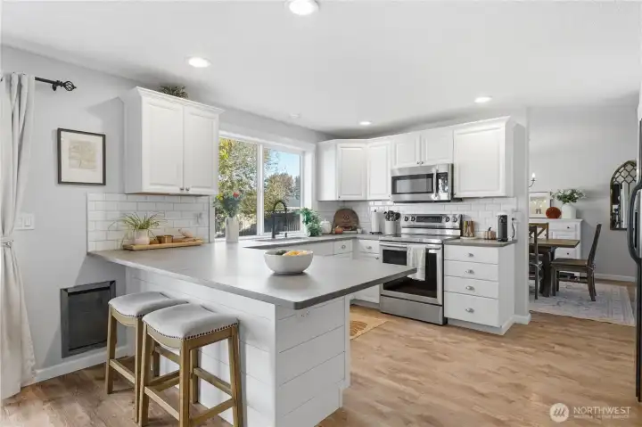 Welcome Home! Stunning fully remodeled 2003 two-story home in Kennewick! 2,540 sq ft, 4 beds, 2.5 baths. Gorgeous updates include quartz counters, brand-new master bath, luxury vinyl plank floors, fresh white trim, shiplap accents, floating shelves & white cabinetry. Cozy gas fireplace w/tiled surround. Spacious 3-car garage + huge .25-acre lot w/mature landscaping, storage shed, firepit area, covered front porch & large shady east-side patio. Fully fenced yard w/timed UGS, tons of gated RV parking with electric hookups & extra-wide paved front pad for additional parking. Move-in ready perfection! This one will not last. Truly a Must See. Contact Your Favorite real estate broker TODAY for a Private Showing!