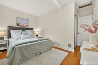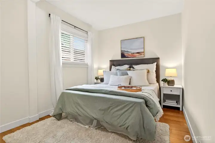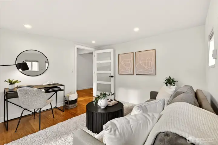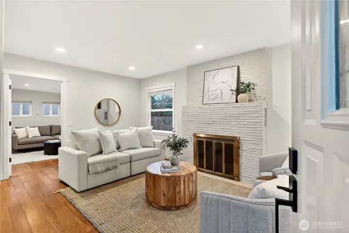 This rare 2-bed, 1.5-bath cottage offers exceptional functionality. A versatile den/bonus room easily serves as a 3rd bedroom or office. Refreshed interior features a cozy wood fireplace, new quartz countertops, and stainless steel appliances. The effortless one-level layout makes everyday living a breeze. Step outside to your private retreat: a fully fenced backyard with a spacious patio and gazebo, perfect for year-round entertaining. Enjoy dedicated parking and a sunny front yard for gardening. Located in a peaceful setting with easy access to local parks, trails (Carkeek Park!), and amenities. This is your chance to own a move-in ready home in a highly sought-after Seattle pocket!