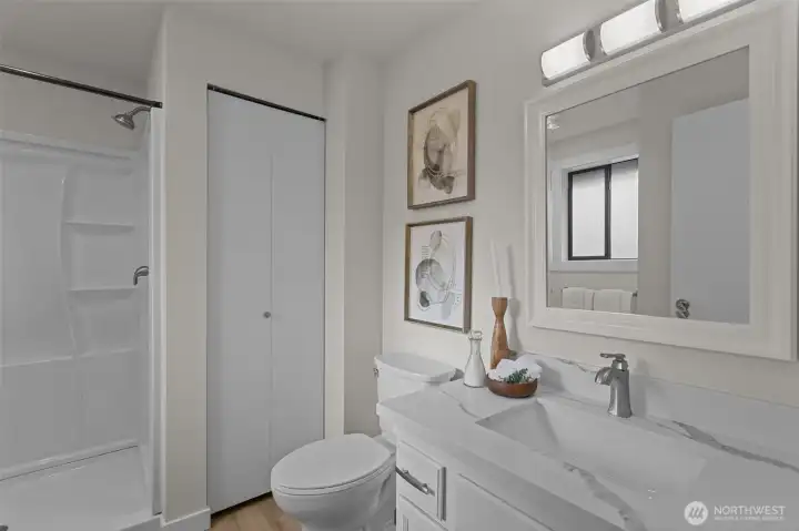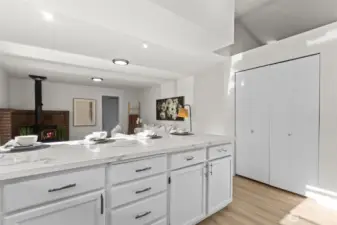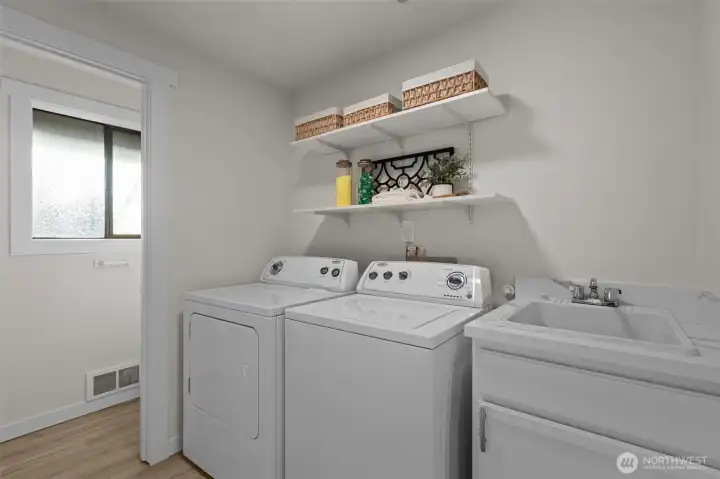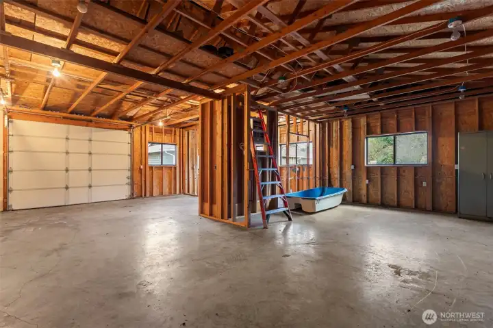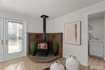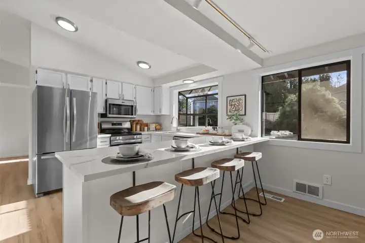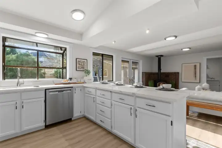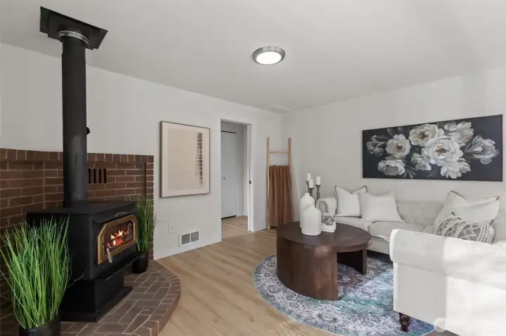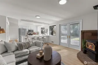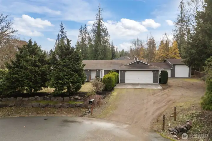 Situated in a quiet cul-de-sac, on almost a 1/2 acre lot, discover a beautifully maintained 3-bedroom, 2.25 bath rambler offering everyday comfort and a nearly 1,500 sq ft shop—ideal for RV owners, hobbyists, and anyone needing real storage. Inside, the home is freshly updated with new paint, LVP flooring, carpet, trim, lighting, and hardware. The heart of the home is a bright kitchen w/ updated cabinets, quartz counters, and new stainless appliances. The layout flows easily w/ double doors opening to a composite deck and a level, mostly fenced yard. Bonus features include a wood stove, large laundry, and primary ensuite. New interior/exterior paint, and heat pump add peace of mind Just minutes to town, Hwy 2, and 522. No HOA dues.