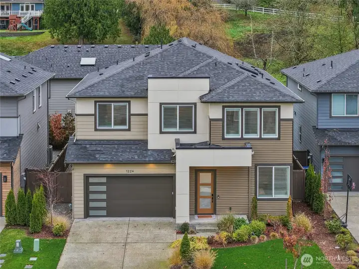Discover elevated luxury living in the heart of Sammamish. This BrightRidge residence showcases sophisticated modern design with 5 bedrooms, 4.5 baths featuring a highly desired main-floor guest suite. The striking exterior and welcoming entry set the tone for a home crafted to impress, featuring a chef’s kitchen with a statement gourmet island, 60" refrigerator/freezer, contemporary lighting, chic tile details, and walls of windows that flood the home with natural light. High-end finishes throughout including upgraded shutter window coverings. Enjoy the backyard with a covered patio and gas fireplace. Located steps from the community park, miles of trails at Big Rock Park, and served by top-rated Issaquah schools.