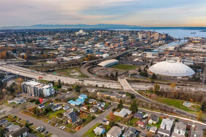 Recently remodeled and cute as a button one bedroom home on two parcels with jaw dropping views of the Tacoma skyline, Commencement Bay, and the Olympic Mountains. Ideally located in the rapidly appreciating McKinley neighborhood of East Tacoma, you will have easy access to I-5, HWY 16, and SR 7. Plus, a handful of Tacoma's best restaurants are within blocks of this property and diverse grocery shopping options are around the corner! You could also live in this home and plan for a townhouse development, which are a permitted use in the R4-L zoning with a max height of 35 ft and min lot area of 1,500 sq ft. Or, you could use the second parcel for a beautiful tiered garden with tons of western sunlight. Don't miss this amazing view property!