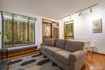 Immaculate corner unit 1 bed condominium at the Snowater Resort, comes turn-key & furnished. Located on the Nooksack River adjacent to the Mt. Baker Snoqualmie National Forest. Easy access to year-round outdoor recreation at Mt. Baker Ski Area and the backcountry. The resort grounds include tennis, pickleball, basketball, racquetball courts, 2 indoor swimming pools, jacuzzi, sauna, and gym. Cook out at the riverfront community BBQ and picnic area or enjoy the quiet at the historical log cabin. Trails surround the property. The perfect place for relaxation and recreation in every season. Capital improvements recently completed: New roof, completed chimney chase & painting project, new screen doors. No special assessment. STR possible.