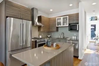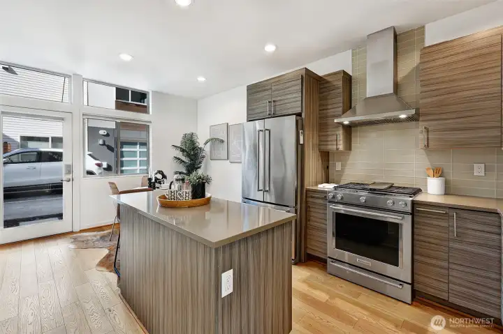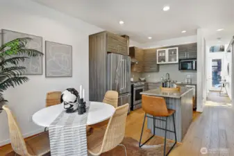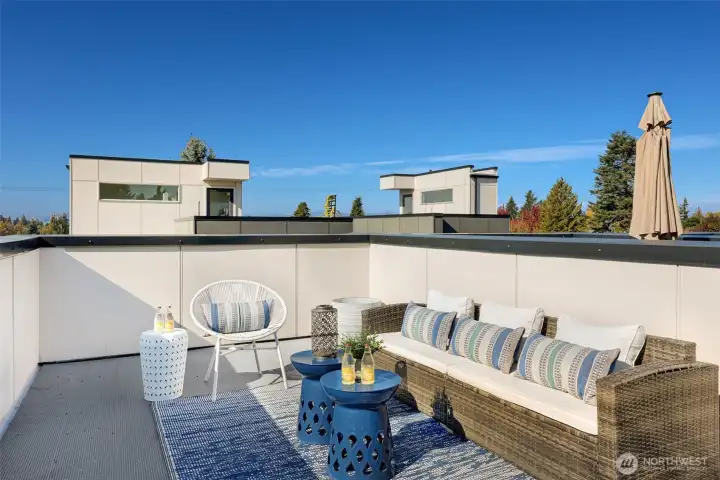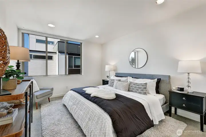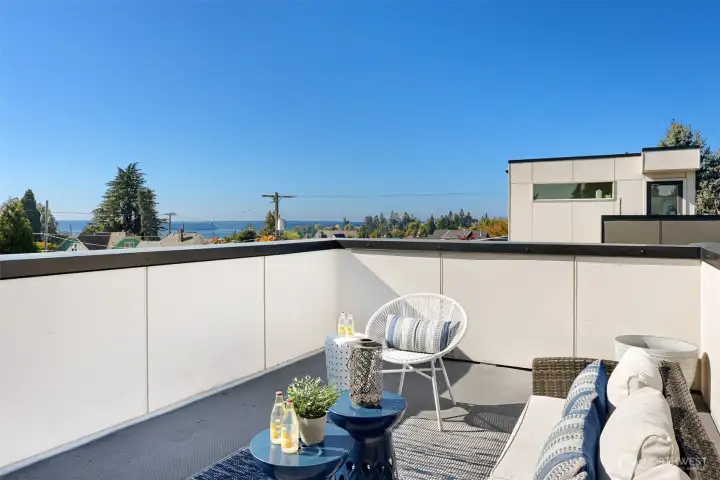 In the heart of West Seattle’s Alaska Junction, this 2016 townhome offers sweeping Puget Sound and mountain views from a private rooftop deck—perfect for sunset watching! Vaulted ceilings w/floor-to-ceiling windows and motorized blinds fill the main level with light, highlighting the living room. Kitchen is sleek and functional w/in-kitchen dining. All three bedrooms are upstairs! Enjoy year-round comfort with mini-split heating/cooling and a space-saving tankless water heater. One parking spot is conveniently located off the kitchen. Modern, bright, and move-in ready!