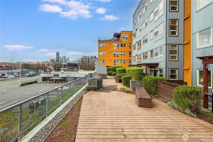 Experience urban living in this light-filled end-unit condo. The expansive great room is flooded with natural light. The large primary suite features built-ins in closet & ensuite bath while 2 other bedrooms provide excellent versatility for guests, home office or creative use. Enjoy an in-unit washer/dryer. Secure entry, a gated garage with 2 dedicated parking spots & well-maintained community gathering room and rooftop deck. Save on utilities since the dues include: central hot water, water, sewer & garbage. The upcoming Sound Transit East Link Extension, trending to open in early 2026 will make commuting even more convenient. Perfectly situated near transit options, cafés, shops + everyday essentials puts Seattle life at your fingertips.