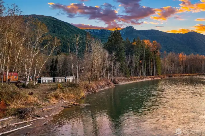 Welcome to a recreational slice of paradise along more than 1,000 feet of Cowlitz River frontage just outside of the popular mountain community of Packwood. Featuring three brand new tiny homes and an elevated crash pad with stunning views of the Cowlitz River, valley, and Gifford Pinchot National Forest. Enjoy fishing directly from your sandy shoreline and watch elk wade through the river and graze across your property. Lewis County PUD power is nearby on a neighbor's property. Picture yourself sitting by a bonfire and make this your RV destination for the ski season while you finish out the tiny homes for additional recreational shelter. Seller financing available via Real Estate Contract with 50% down, 5-year balloon, and 7% interest.