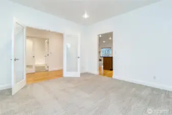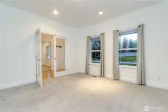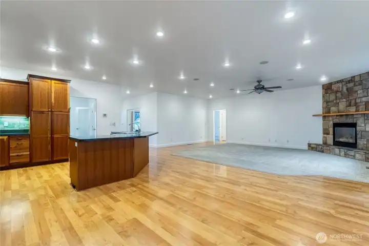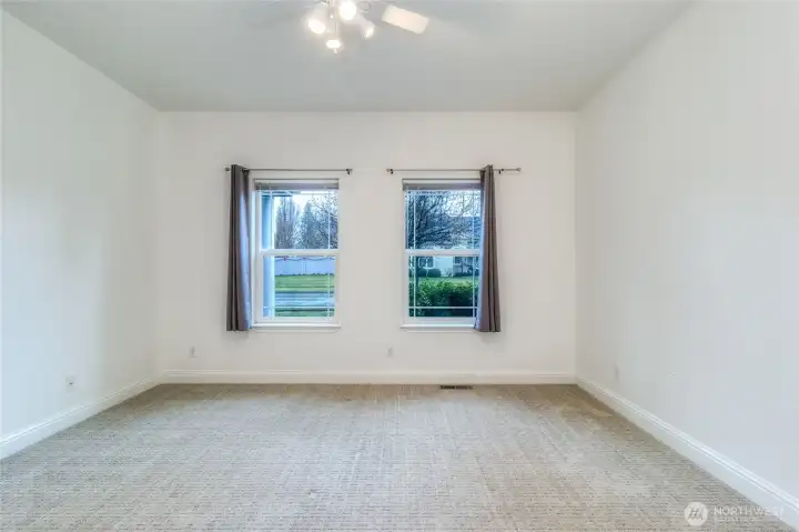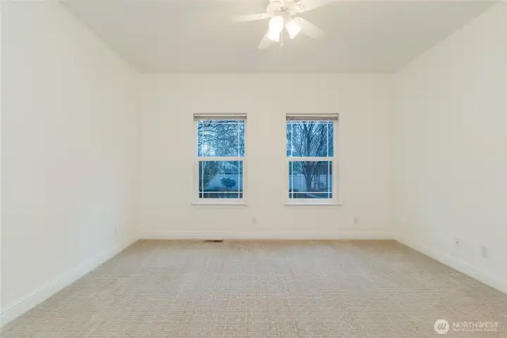 Welcome to this beautifully maintained 2,312 sf single-level home offering exceptional comfort and flexibility. This 3-bedroom, 2-bath residence has a warm, inviting gas fireplace at the heart of the home. Carpet new three years ago. The layout includes two flex rooms ideal for a formal dining room, den or office. The floorplan provides privacy, with the primary suite located opposite the guest rooms. The primary retreat includes two large closets and a private exterior door leading directly to the hot tub area—a perfect spot to unwind (hot tub included). Enjoy outdoor living on the covered back patio overlooking the fully fenced yard, ideal for pets, gardening, or peaceful relaxation. Water feature in the backyard.