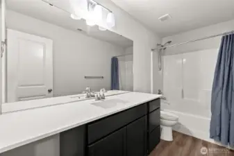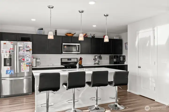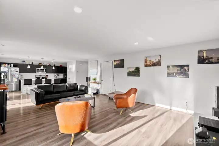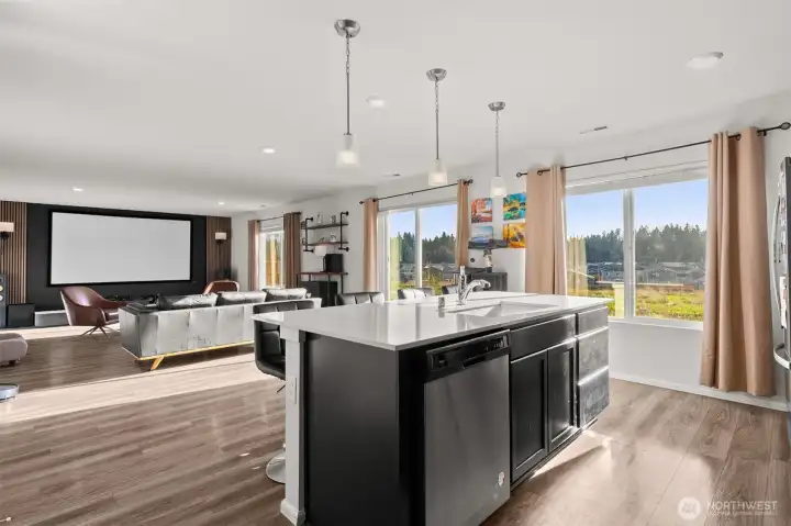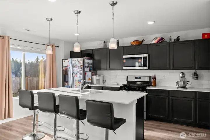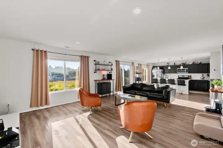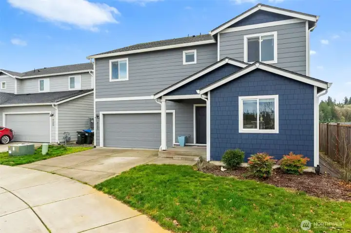 Great opportunity 4+ bedroom home on a tucked away cul-de-sac with open views from an elevated lot in the desirable Preserve neighborhood. Built in 2021, this like new home has a great floorplan and lots of space to use. Enter the main level with vinyl planked floors that lead past the front office/ bedroom and the dining area to the open kitchen and living room. Exit the sliding door to a spacious yard with garden beds and territorial views. Upstairs are 4 bedrooms, utility room and bonus space. Primary bedroom has large bathroom and big walk in closet. The front 2 bedrooms can see the Olympic mountains on a clear day! Close to amenities and highway access. Neighborhood park and playground are close as well. Home backs to open space.
