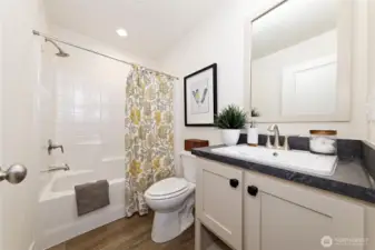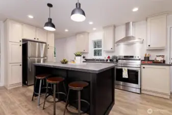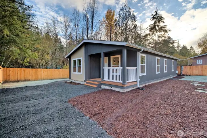 Discover this charming, newly constructed corner lot home at Lakeshore & Annas! Featuring 1,344 sq ft of living space. This property provides ample yard space, privately fenced backyard. Enjoy this corner lot with only one neighbor behind and adjacent to a green belt. This NEEM-certified residence includes stainless steel appliances and boasts a built-in covered front porch with Trex decking. The upgraded midnight package features an accent batten and board wall in the living room, along with stylish black pendant lights over the kitchen island. With 3 bedrooms, 2 baths, a walk-in master closet, private community boat launch to Puget sound and lake, private community parks, RV Parking, and the home combines comfort and modernity perfectly!