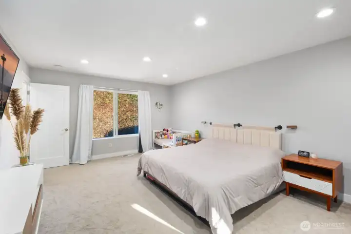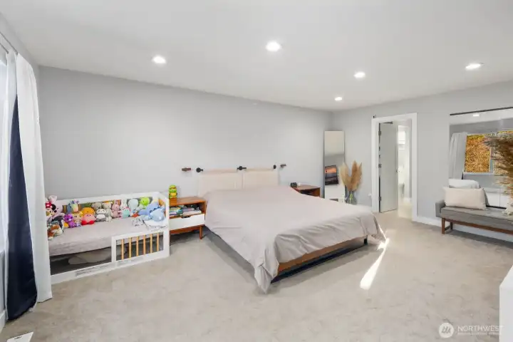 What a find in Liberty Ridge! A refreshed & renewed home awaits you with newer modern-styled island kitchen, backsplash tiling, cabinets & stainless appliances. Updated doors, trim, lighting, and fixtures throughout. You're greeted by a spacious & bright living room w/ gas fireplace, durable & stylish tile flooring, overlooking the large backyard. Expansive primary with large ensuite and walk-in closet. 2 additional bedrooms upstairs and a shared bath. Generous pantry and laundry pass through to the 3 car garage prepped for EV charging. Large greenbelt protected private backyard with room for gardening, a patio for a firepit, dog run & an added bonus: a fully powered & heated shed, great for an office-home workout. This is a gem!