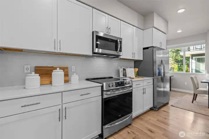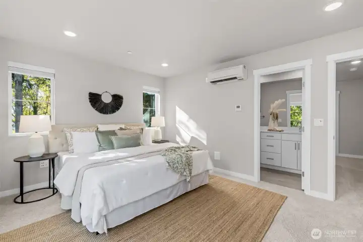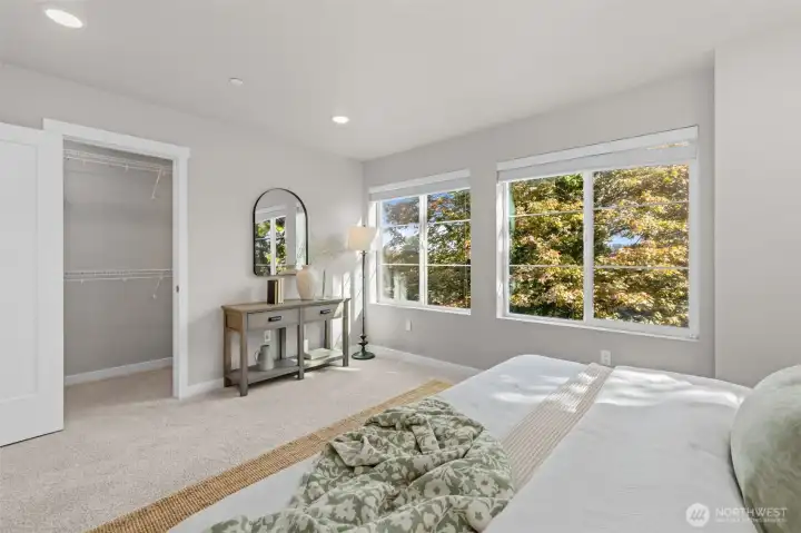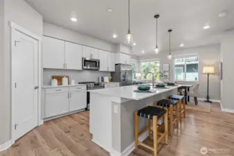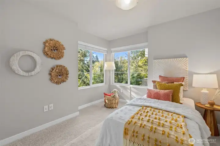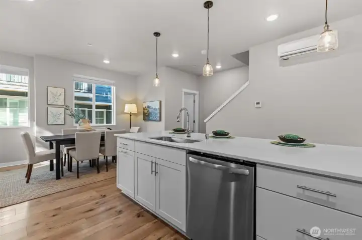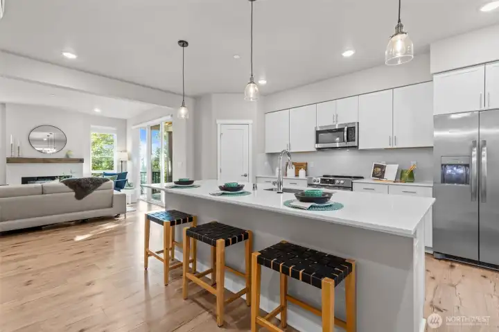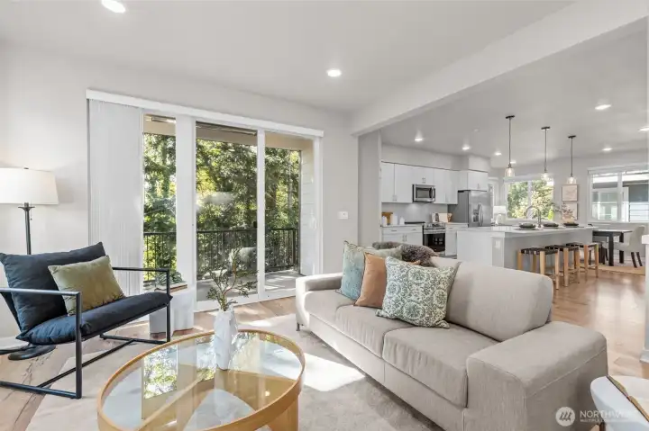 Beautiful, like-new 4 bedroom townhome in a prime location walking distance to downtown Kenmore! Stunning view home, privately located within the community at the end of an alley. This stylish home offers a bright, open layout with a spacious kitchen island and covered deck with heat lamps off the living room—perfect for year-round enjoyment. Upstairs features a large primary bedroom with an en-suite bath & 2 additional bedrooms. The entry level includes a full bedroom and bath, ideal for guests or a home office. Complete with a two-car garage and access to community amenities including a picnic area, dog park, and playground. Modern living in a peaceful, convenient setting! Burke Gilman trail, restaurants and shopping all within minutes.