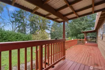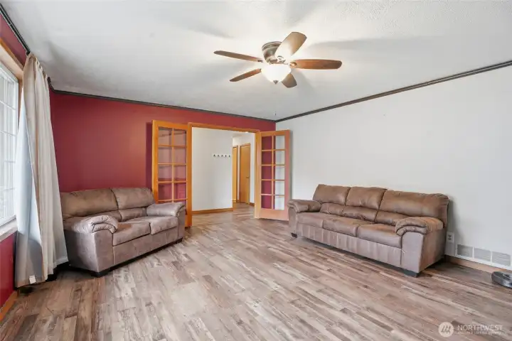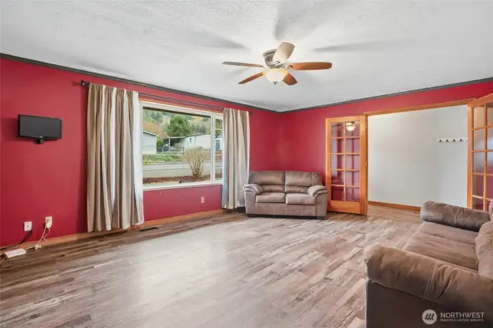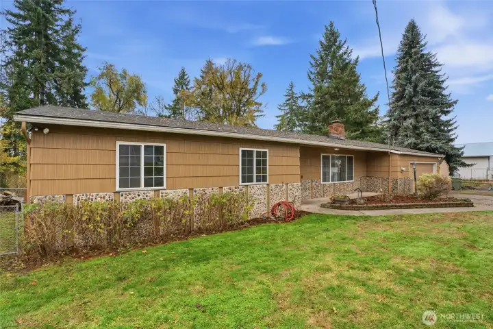 Charming one-level home on a roomy 0.75-acre lot. Features 3 bedrooms, 2 baths, a living room with wood-burning insert, bonus room/4th bedroom, and separate utility room. The kitchen opens to a large dining area with slider to the back deck. Enjoy a spacious backyard with deck, fire pit, mature landscaping, fruit trees, garden space, and a fenced pet area with wooded trails. RV parking, storage shed, double garage, extra parking, and fenced front yard add convenience. Central A/C, new laminate floors, and a remodeled bath with deep clawfoot tub. Close to I-5, waterfront, shops, restaurants, golfing, and world-class fishing.