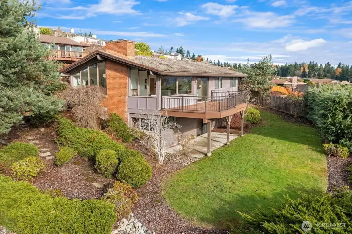 Immerse yourself in breathtaking southeastern views that feature Lake Sammamish and the Cascade Mountains. This charming mid-century home has just hit the market for the first time in 40 years. Protected by neighborhood covenants, you can enjoy these stunning views for a lifetime. As you step through the front door, vaulted ceilings and flooding natural light greet you. The great room, filled with windows, capitalizes on the breathtaking views and features a fireplace and a cozy dining nook. The rebuilt 310 sqft deck is ready to make your indoor-outdoor living dreams a reality, while the large yard is ready to be enjoyed and easy to maintain. This is a once-in-a-generation home in a highly coveted neighborhood and is not to be missed.